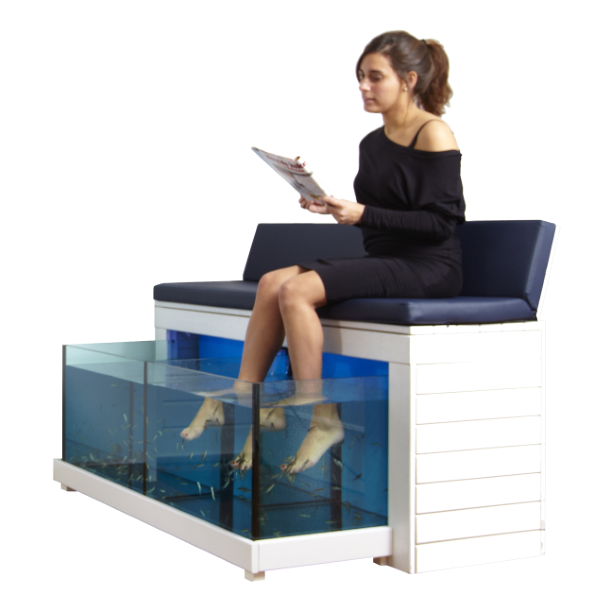Je kunt bij ons terecht voor een fish spa behandeling met de Garra Rufa visjes. Een behandeling met de Garra Rufa visjes is een unieke ervaring op zich. Het is een bijzondere belevenis om je voeten te laten verwennen door de Garra Rufa visjes. Voor de gezonde huid is het een heerlijke ontspannende peeling die tevens ontstressend werkt. Het verwijderen van de dode huidcellen geeft een relaxed gevoel. De huid wordt door de visjes geprikkeld (zacht kietelend gevoel dat in het begin nogal eens op de lachspieren werkt) waarna de stress het lichaam verlaat. Na de behandeling is je huid voelbaar zachter en soepeler.