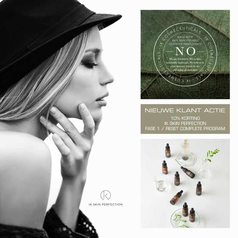 - Ontvang éénmalig 10% korting op onderstaande Ik Skin Perfection behandeling